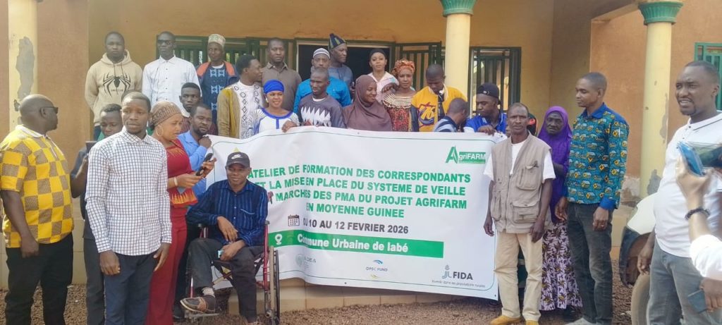 Labé, 12 février 2026 – Pendant trois jours, du 10 au 12 février, la ville de Labé a accueilli un atelier stratégique consacré à la mise en place d’un système de veille et d’alerte des flux des spéculations agricoles dans treize marchés de la Moyenne Guinée. Organisée dans le cadre du projet AgriFARM, la formation a réuni 50 participants issus des plateformes multi-acteurs (PMA), avec l’appui technique de l’ONG AGUISSA, spécialiste des Systèmes d’Information sur les Marchés (SIM) en Guinée.